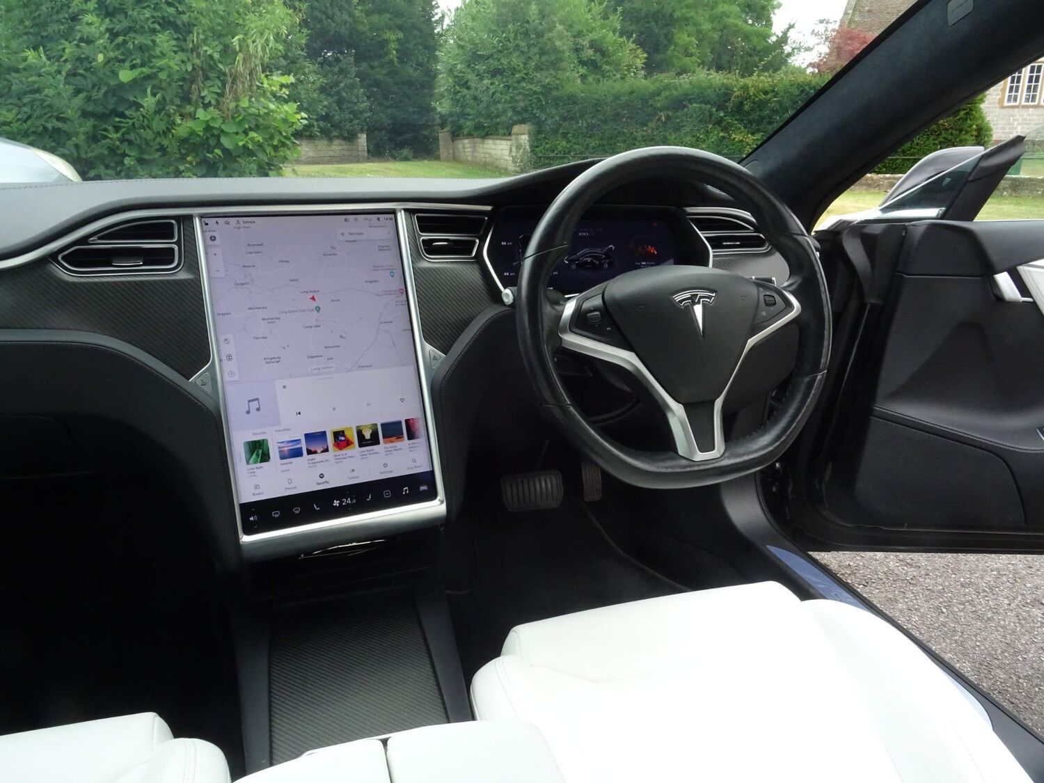 VIEWING ON APPLICATION. We are proud to present this excellent example of the Tesla Model S 100d. This vehicle was originally registered by Tesla UK and since nearly new has been owned by a personal friend of mine. Some specifications to highlight: 21” Turbine alloy wheels in Sonic Carbon, Full Self Drive upgrade (including navigate on auto-pilot, auto-lane changing and 'Summon' feature). Black carbon fibre trim. Free Premium Connectivity included (no monthly subscription). Free supercharging for life. All relevant recalls completed including the eMMC chip upgrade. Full maintenance record available. 4 years warranty remaining on the vehicles drivetrain and battery. Built in 3-camera Dash Cam (1 forward and left/right rear facing cameras), with SD Card recording capability and CCTV ‘Sentry’ mode when unattended. 2 rear centre cupholders, 6 in total. 4 USB ports, two in the front and 2 in the back. Type 2 and 3-pin charging cables included. Roadside hazard kit included. Floor mats included. **************************** Some more features: PIN to Drive advanced security. Sub-zero package includes front and all 3 rear heated seats. Telsa toybox apps and games. Romance mode. Cabin overheat protection. Remote climate control (warm up/cool down the car from the app before your journey!). ‘Climate Keeper’ mode which leaves the climate control on when you’re away from the car. ‘Dog Mode’ like Climate Keeper, but also turns off the alarm so your dogs/wife/kids don’t set it off while you’re away. Customisable binnacle. Entertainment includes streaming services like Tune-In and Spotify which can either be your own account or the built-in Tesla account. 150 litre ‘Frunk’ storage area where the engine would be. 1,795 litre total storage capacity with the rear seats folded down. ****************************** Contact us today. Specialist finance packages available ********************************** Buy with confidence from a family run business est. 1981. Delivery is available.